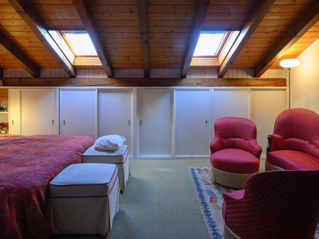 Piano secondo (mansardato): ampio open space ad uso versatile, attualmente adibito a camera matrimoniale con zona living, bagno