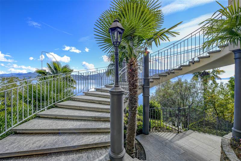 Sottostante la strada statale la proprietà ha un accesso alla spiaggia ed al lago Maggiore con un terreno di 2500 mq. Si può richiedere il permesso per un pontile di attracco barche.