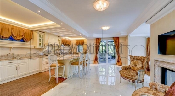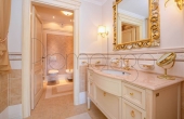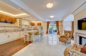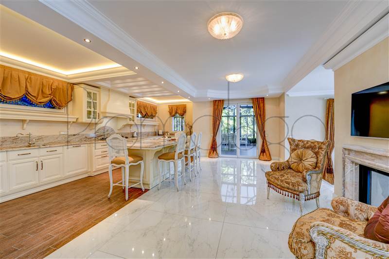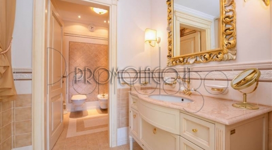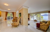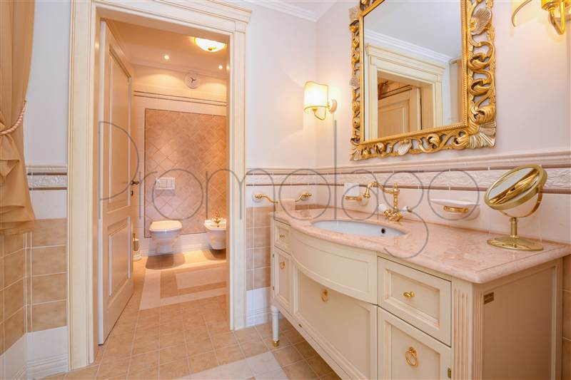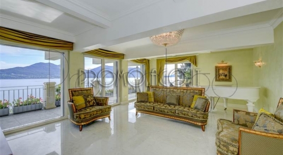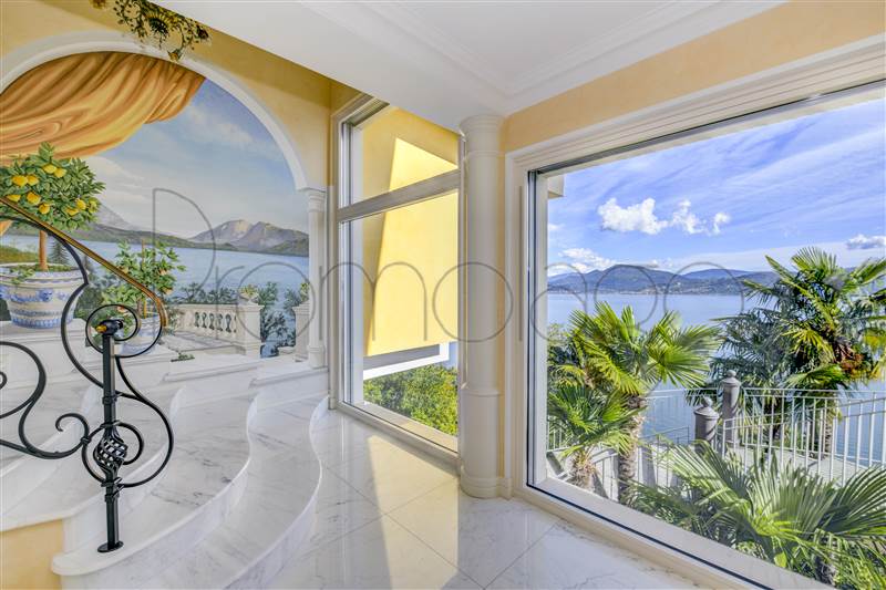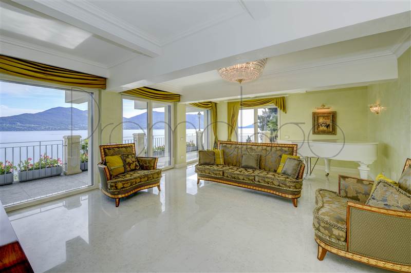 I pavimenti sono in Marmo di Carrara e in legno intarsiato con profili geometrici, i bagni con ceramiche ed accessori speciali, pareti e soffitti in gesso con modanature che accolgono corpi illuminanti, riscaldamento a pavimento con integrazione di pannelli solari. L’impianto di illuminazione è stato studiato per dare grande efficacia e risalto ad ogni ambiente. La veranda, accorpata alla zona giorno, ha soffitti e pareti in vetro camera. Le signorili sedute consentono durante il pranzo di affacciarsi sul lago Maggiore e sul parco circostante.