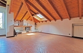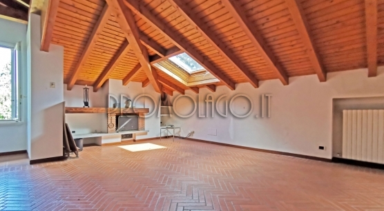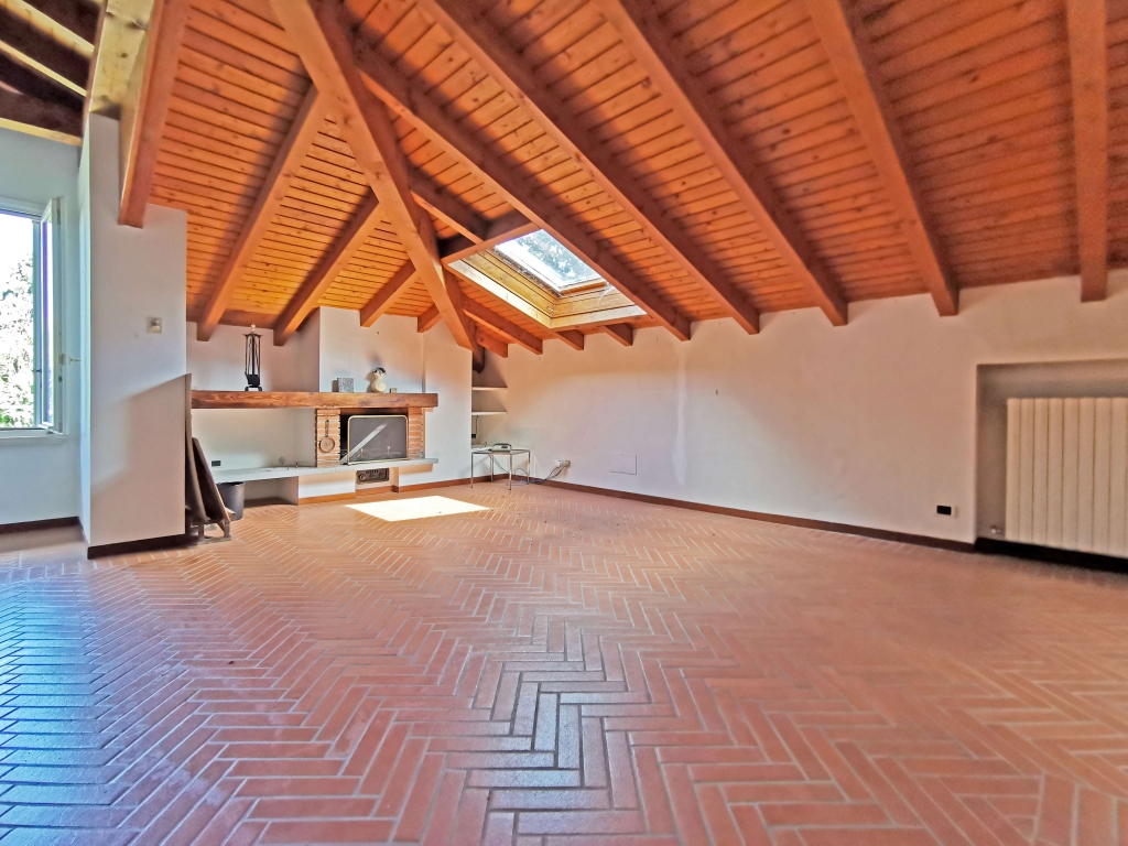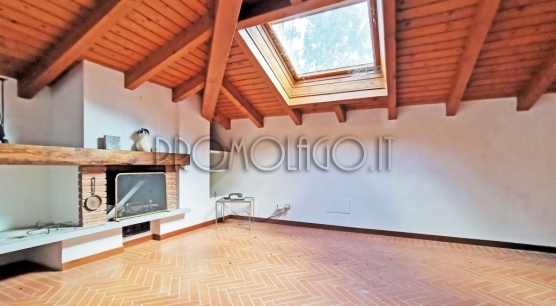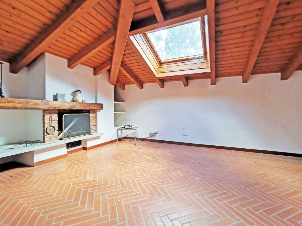 Mansarda: soggiorno/studio con camino, bagno e ripostiglio, ideale come spazio multifunzionale.